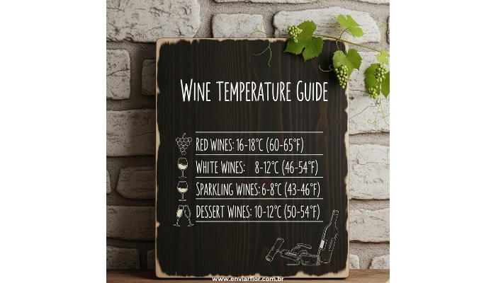 - Tintos médios: Temperatura ambiente em torno de 60-65°F