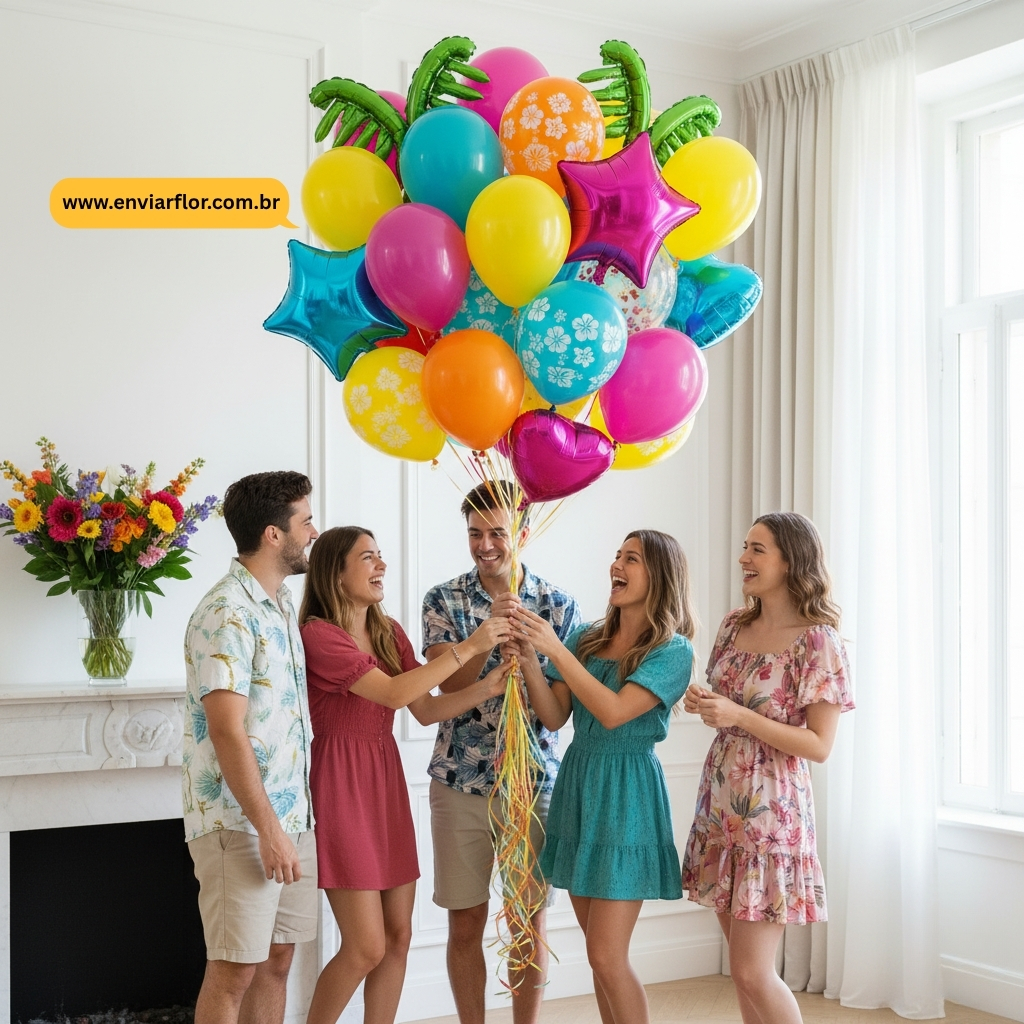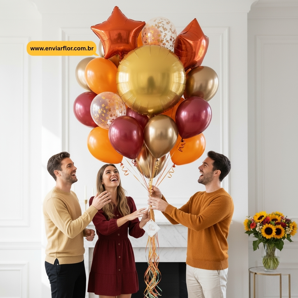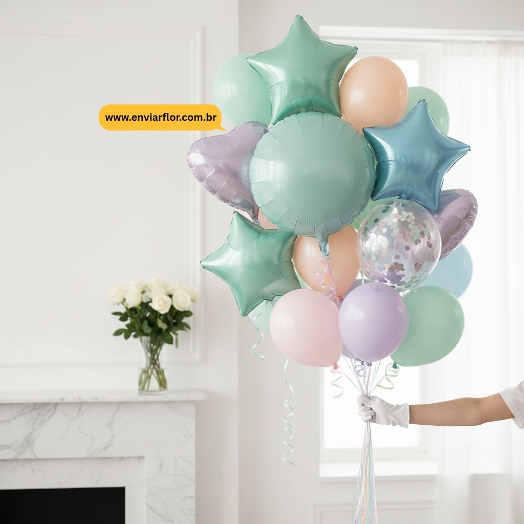 Sim! A primavera combina perfeitamente com tons pastel (menta, lavanda, pêssego), o verão pede cores vibrantes e alegres (amarelo, turquesa, coral), o outono brilha com tons quentes (laranja, bordô, dourado) e o inverno fica mágico com cores frias (azul gelo, prata, branco). A sintonia com a estação torna seu presente mais atencioso e atual. Confira os serviços de entrega de balões online para o Brasil que oferecem coleções sazonais.