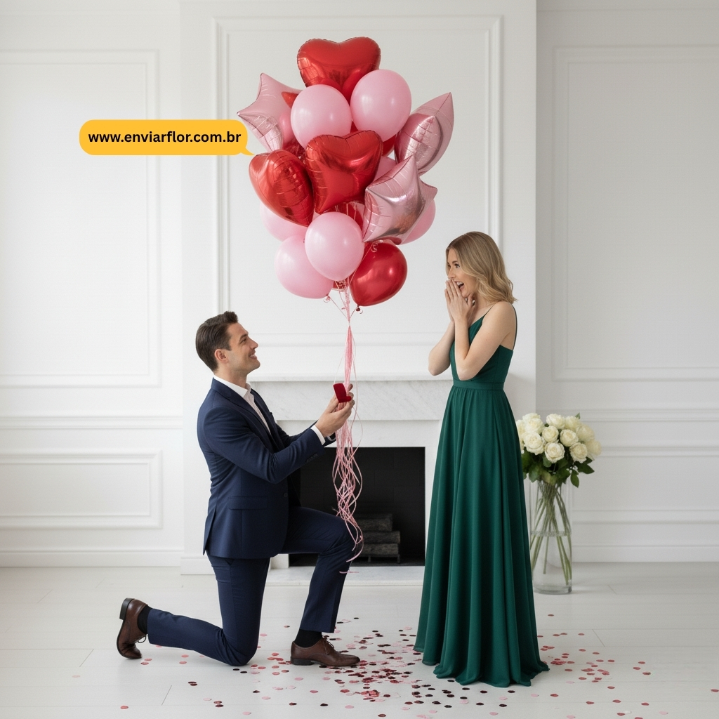 Melhores usos:Dia dos Namorados, aniversários, surpresas românticas de aniversário, celebrações de noivado e decorações de casamento.